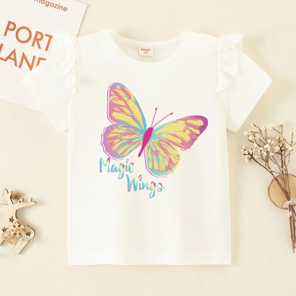 Girl Dazzling Butterfly Pattern Short Sleeve Top