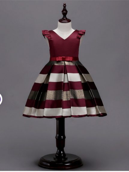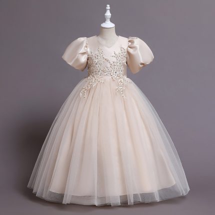 Girls Puff Sleeved V-neck Rhinestone Princess Dress