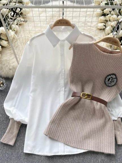 Ladies Sleeveless sweater and long-sleeved shirt+Belt